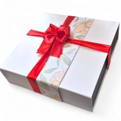Your Cider Gift Hamper will come presented in our custom made white & black medium gift box, finished with lavish satin ribbons, hand made bow and standard message card.